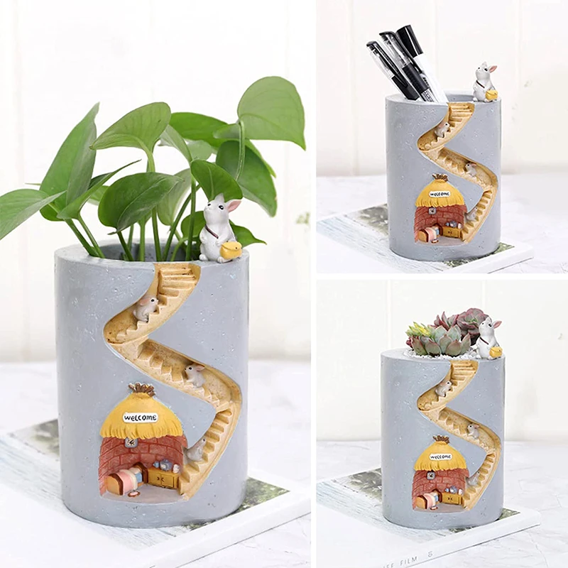 What a wonderful way to pamper your plants! This creative planter pot features the cute hedgehog or rabbit family who live their life inside their cozy home, surrounded by delicate flowers or plants. Think of it as your own miniature ecosystem, right at home or office. It’s perfect for indoor plants that live in dry areas or require less watering.
