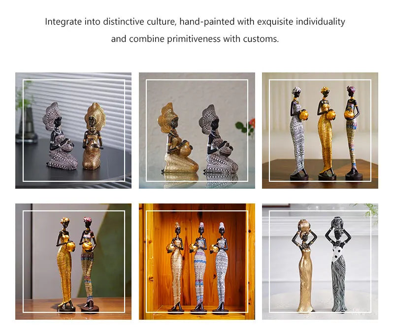 Enrich your home with the profound beauty and artistic spirit of The Echoes of Heritage Collection. This diverse gallery of resin sculptures pays tribute to the strength, grace, and cultural richness of African women. Each figurine is a unique work of art, telling its own story through posture, attire, and expression. From tall, elegant figures to abstract, powerful busts, these pieces are designed to be more than just decorations—they are conversations, statements of identity, and a touch of worldly sophistication for your home.